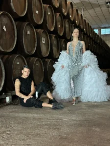 José Perea cose la espuma del vino: moda en directo inspirada en el Robles Brut Nature
