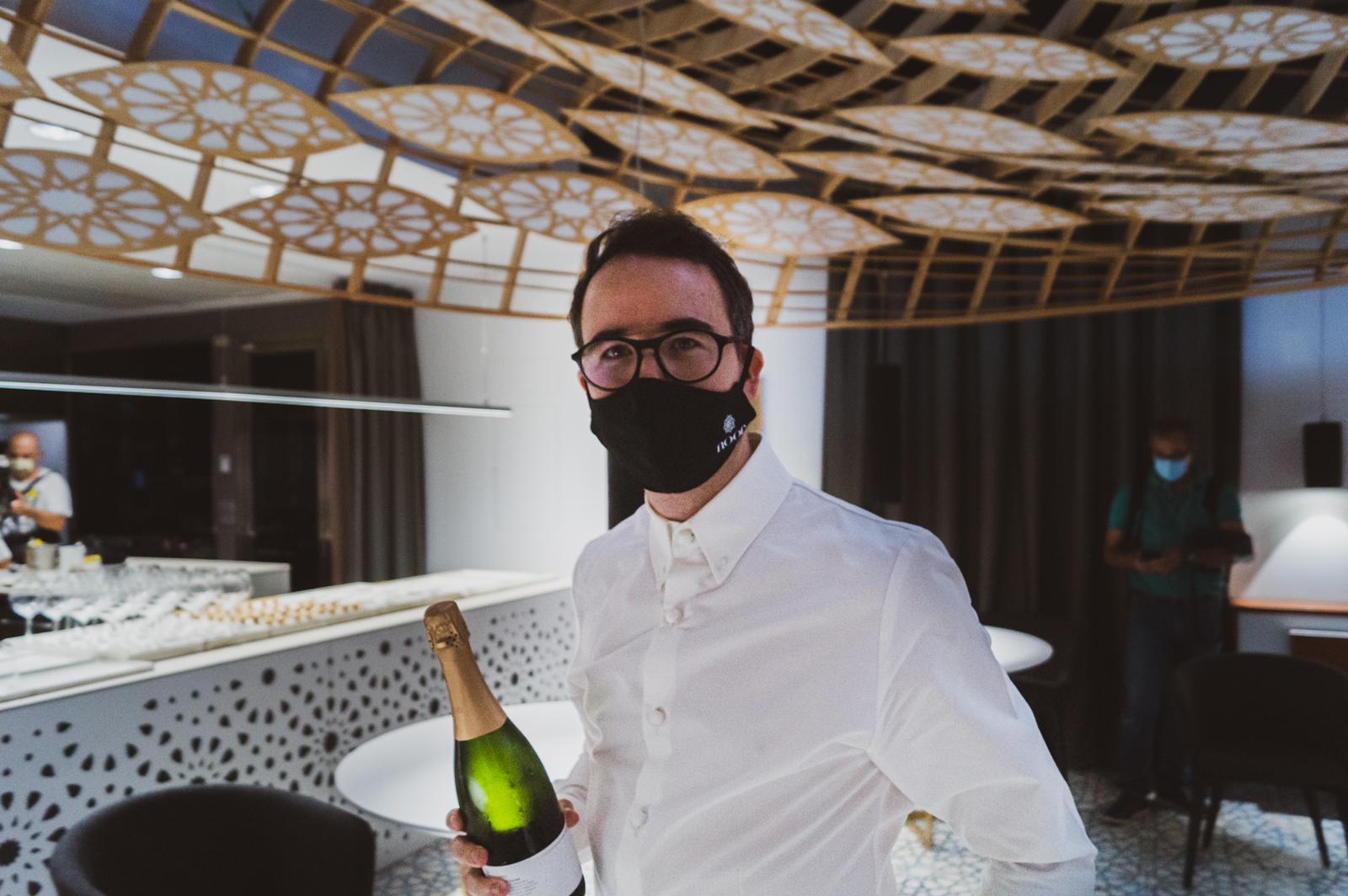 Paco Morales con una botella de Robles Brut Nature con 24 meses de crianza